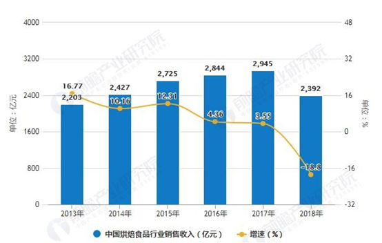 2013-2018年中國烘焙食品行業(yè)銷售收入統(tǒng)計(jì)及增長情況