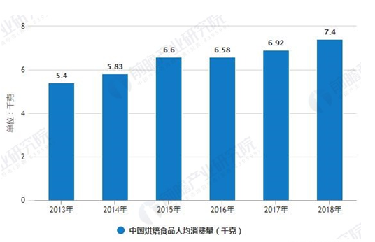 2013-2018年中國烘焙食品人均消費(fèi)量統(tǒng)計(jì)情況