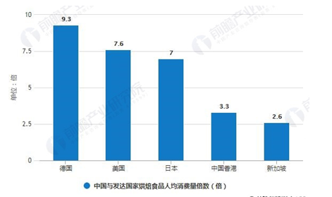 2018年中國與發(fā)達(dá)國家烘焙食品人均消費(fèi)量對比情況